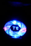 stock LEDs for power and hard drive activity replaced with blue LEDs. |